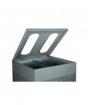 Trash can offers functional litter control in an elegant design. Open top with a vinyl trimmed disposal opening. Made of fire-safe steel. Its wall-hugging design is ideal for areas where looks are important and space is limited.