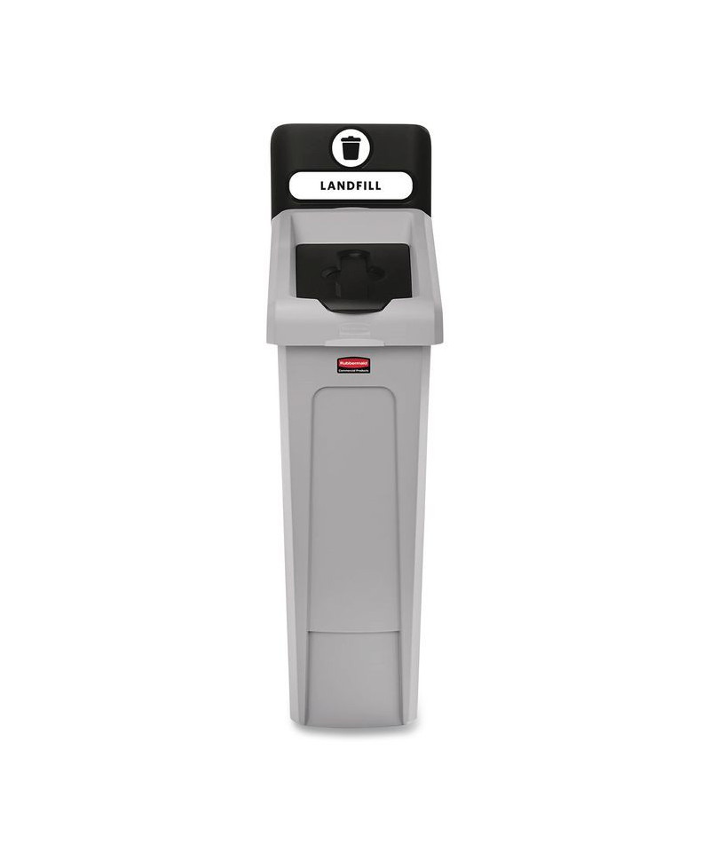 Slim Jim Recycling Station Kit, 1-Stream Landfill, 23 gal, Plastic, Gray/Black
