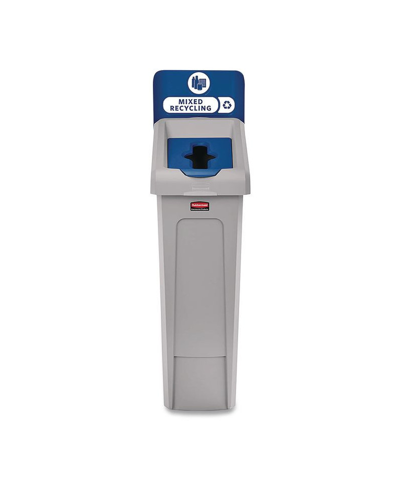 Slim Jim Recycling Station Kit, 1-Stream Mixed Recycling, 23 gal, Plastic, Gray/Blue