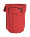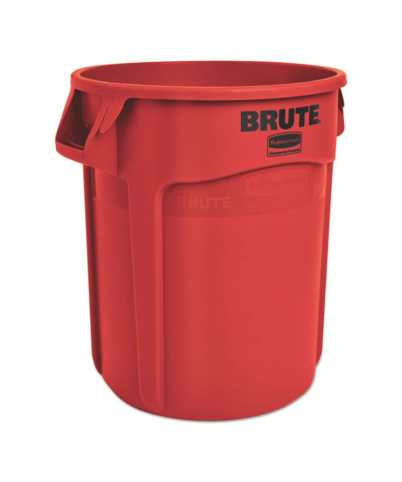 Vented Round Brute Container, 10 gal, Plastic, Red, 6/Carton