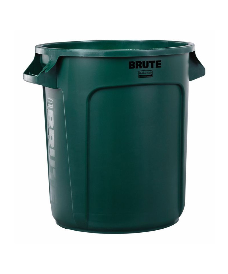 Vented Round Brute Container, 10 gal, Plastic, Dark Green