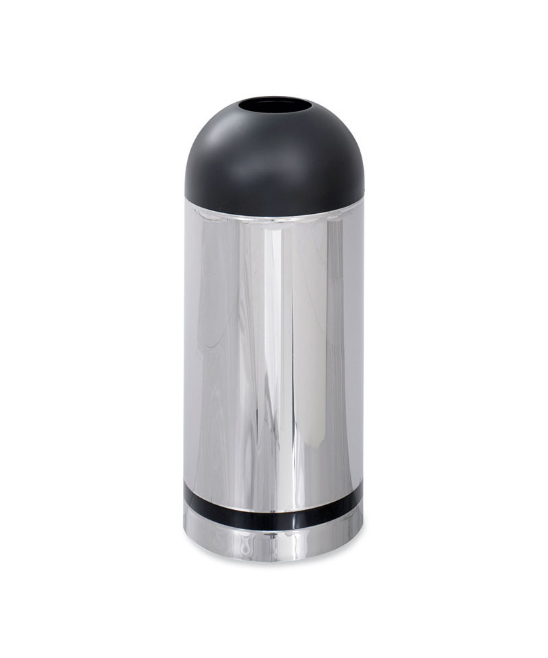Upgrade your indoor spaces with the sleek, professional appeal of the Reflections by Safco® open top dome receptacle—a high-quality waste solution designed for both style and durability. Crafted from puncture-resistant steel, this 15-gallon trash can features a rolled rim and double lock seams for long-lasting performance, making it ideal for high-traffic areas. The eye-catching chrome and black finish adds a polished look to any office, lobby or public space while seamlessly blending with modern décor. Designed for indoor use only, this open-top dome receptacle offers easy disposal and maintenance without compromising on aesthetics. Make cleanliness effortless and elegant with Safco's trusted craftsmanship.