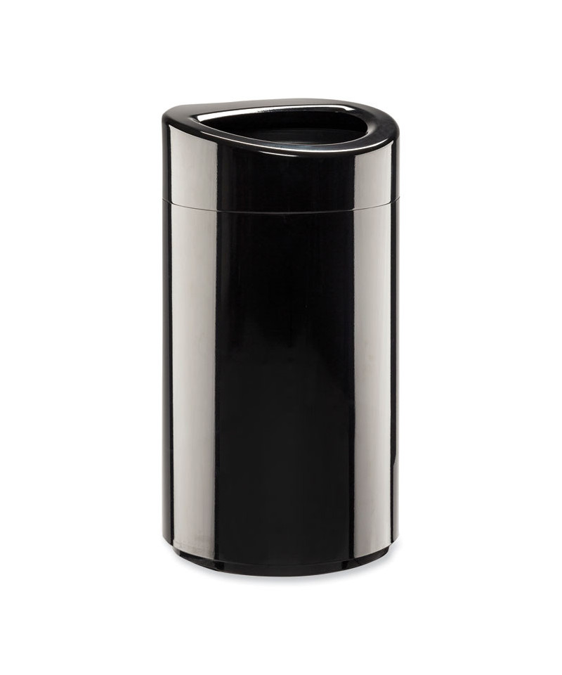 Open Top Oval Waste Receptacle, 14 gal, Steel, Black