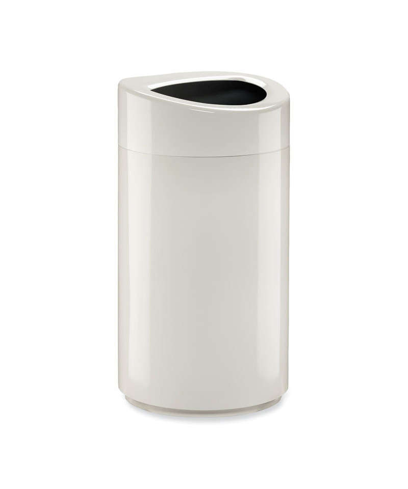 Open Top Oval Waste Receptacle, 14 gal, Steel, White