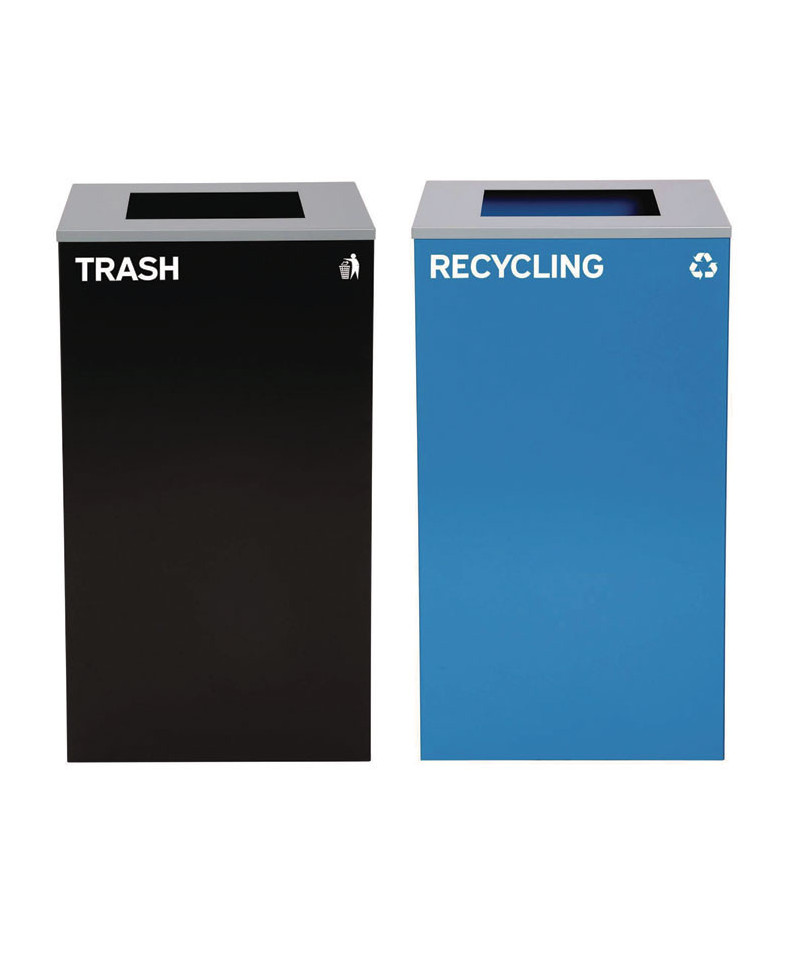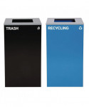 Set of 2, 29 gal Cans-Includes one blue Recycling and one black Trash Can each with Square Lids.