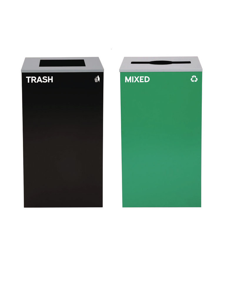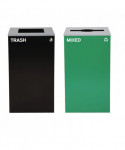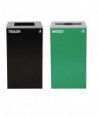 Set of 2, 29 gal Cans-Includes one green Mixed Recycling Can with Mixed Lid and one black Trash Can with Square Lid.