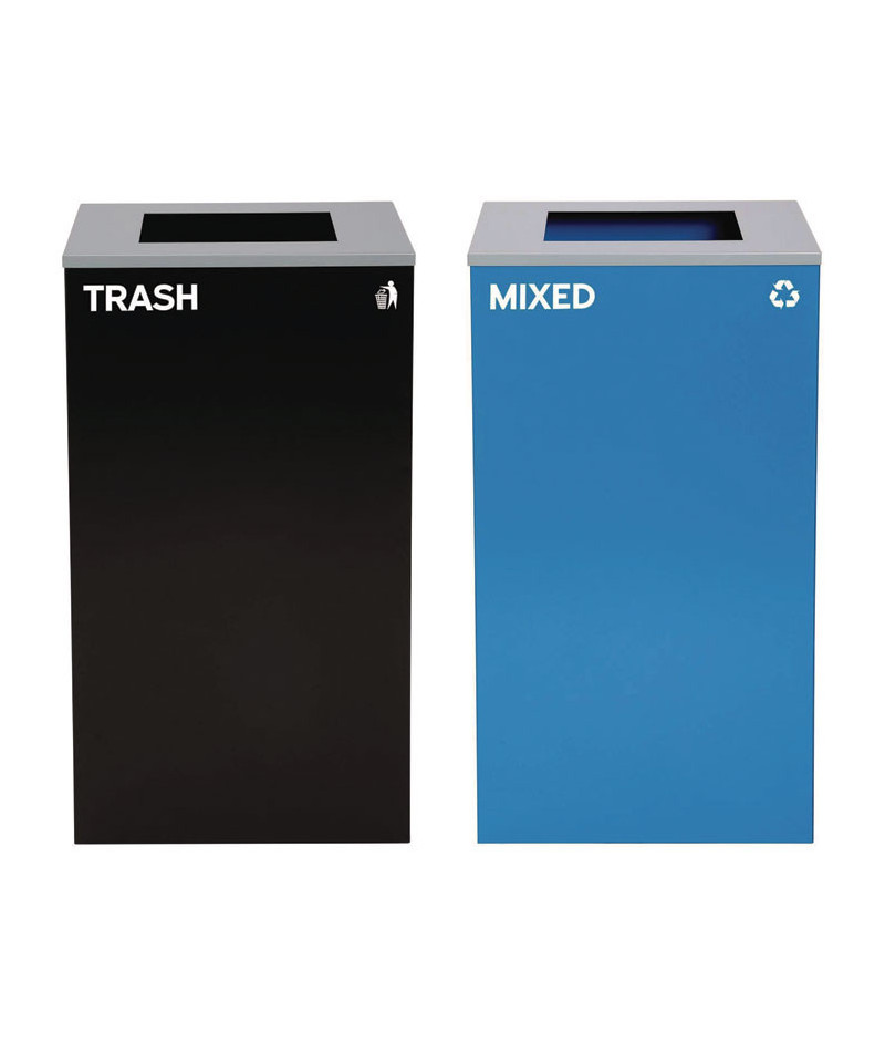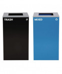 Set of 2, 29 gal Cans-Includes one blue Mixed Recycling Can and one black Trash Can each with Square Lids.