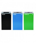 Set of 3, 29 gal Cans-Includes one blue Mixed Recycling Can and one green Compost Can each with Mixed Lids, one black Trash Can with Square Lid.