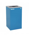29 Gallon Trash/Recycling Cans, Steel, Blue Mixed Recycling with Mixed Lid, Black Trash Can with Square Lid