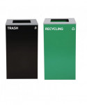 Set of 2, 29 gal Cans-Includes one green Recycling Can and one black Trash Can each with Square Lids.