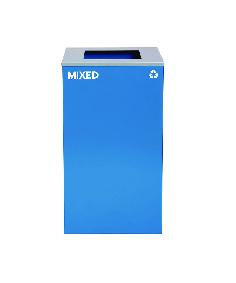 29 Gallon Trash/Recycling Cans, Steel, Blue Mixed Recycling Can with Square Lid