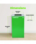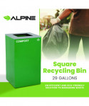 29 Gallon Trash/Recycling Cans, Steel, Green Compost Can with Square Lid