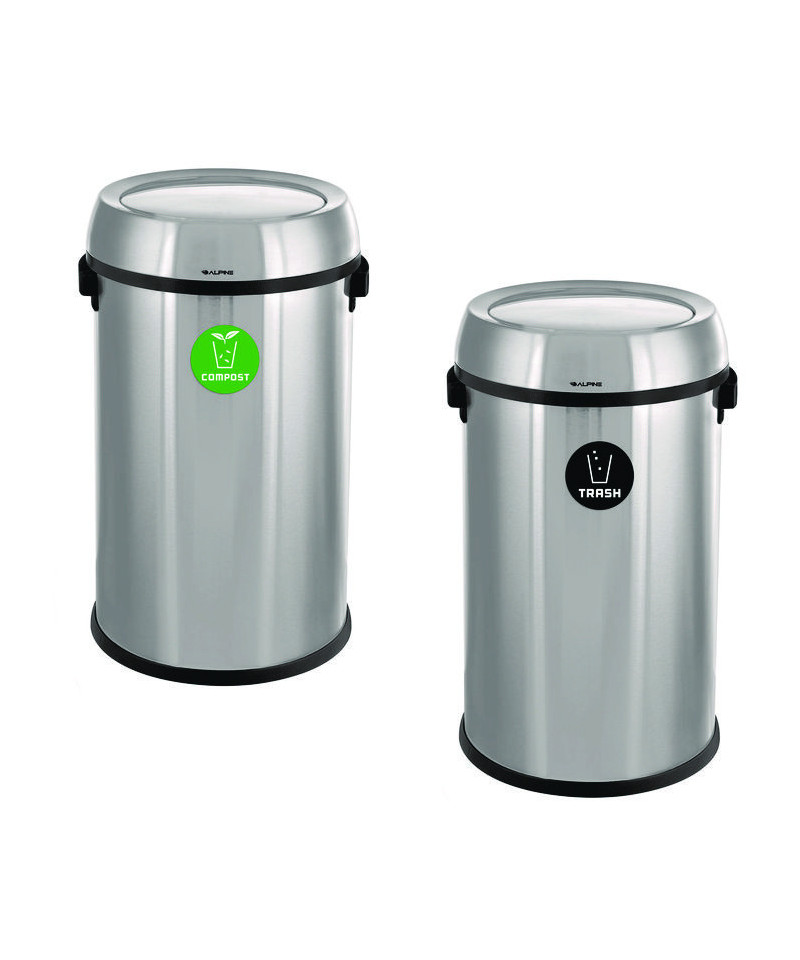 When equipping your business's interior with waste receptacles, you want to be reassured it will survive constant daily use and add to your company's aesthetic. With our modern, multi-stream waste management 17 Gallon Stainless Steel Indoor Compost and Trash Station with Swivel Lids, you can be confident you're getting an everlasting product that will help maintain cleanliness in your facilities. The 17-gallon capacity is sure to accommodate a more significant amount of compost and trash, fulfilling your foot traffic demands. Included with every purchase are a durable compost and trash sticker that will identify its intended purpose. The vibrant colors of the stickers offer optimal visibility, assuring waste goes into the proper stream. In addition, the lids of the receptacle's seamless design conceal trash bags but can easily be removed when needed. The large swivel lid will also allow precise and discrete disposal of all forms of waste while keeping unpleasant odors at bay. Our 17 Gallon Stainless Steel Indoor Compost and Trash Station with Swivel Lids will allow you to streamline waste collection in your high-traffic area while adding a touch of modern appeal.