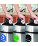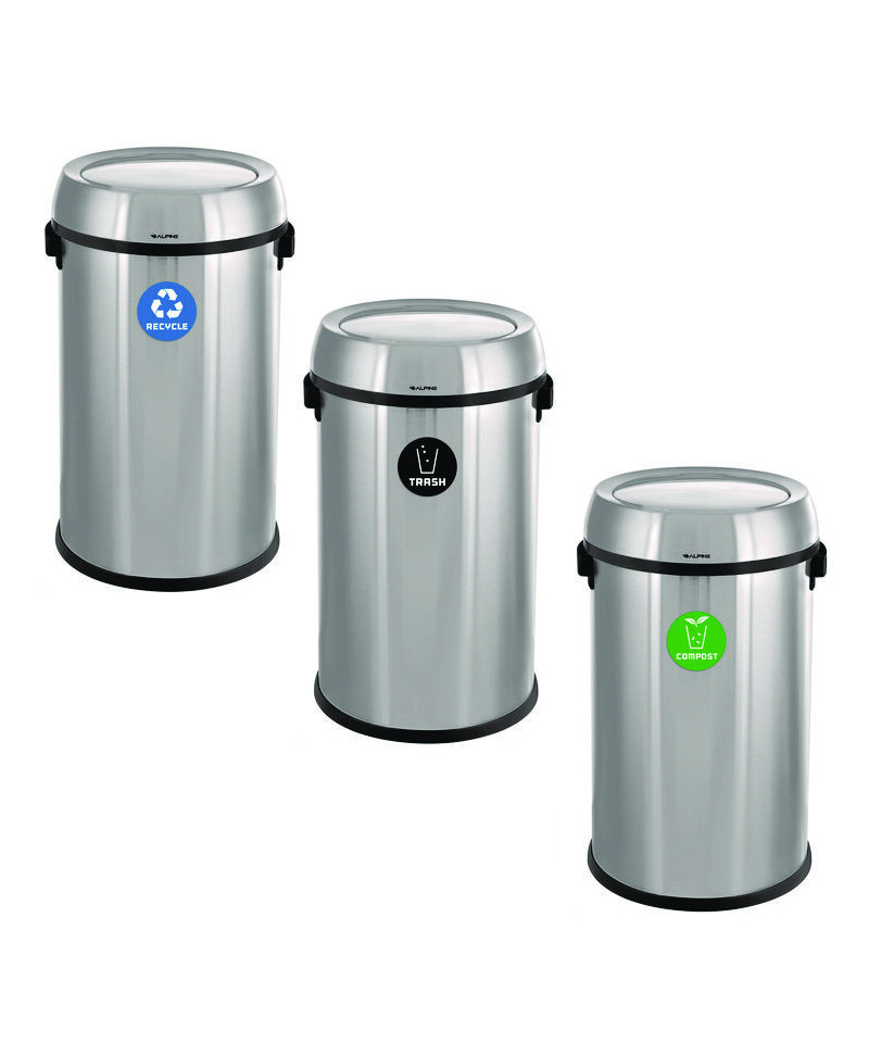 When equipping your business's interior with waste receptacles, you want to be reassured it will survive constant daily use and add to your company's aesthetic. With our modern, multi-stream waste management 17 Gallon Stainless Steel Indoor Compost, Trash and Recycling Bins with Swivel Lids, you can be confident you're getting an everlasting product that will help maintain cleanliness in your facilities. The 17-gallon capacity is sure to accommodate a more significant amount of compost and trash, fulfilling your foot traffic demands. Included with every purchase are a durable compost and trash sticker that will identify its intended purpose. The vibrant colors of the stickers offer optimal visibility, assuring waste goes into the proper stream. In addition, the lids of the receptacle's seamless design conceal trash bags but can easily be removed when needed. The large swivel lid will also allow precise and discrete disposal of all forms of waste while keeping unpleasant odors at bay. Our 17 Gallon Stainless Steel Indoor Recycling Compost and Trash Bins with Swivel Lids will allow you to streamline waste collection in your high-traffic area while adding a touch of modern appeal.