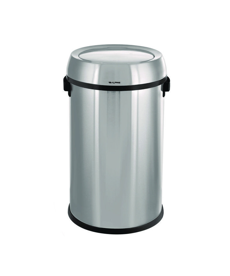 The Alpine Industries Stainless Steel Trash can with Swing Lid has a 17 gal capacity, making it a desirable waste management choice for areas with small to moderate scores of traffic. It can conveniently hold more for less, making for less frequent bag changes. The trash can is durably constructed using brushed stainless steel to provide long-term strength and use for years to come. The sturdy material holds up extremely well against everyday wear and tear and is smudge-resistant so that it always looks clean and fresh. The Alpine Industries 17 Gal trash can is ideal for any high-traffic public or commercial area, including restaurants, hospitals, healthcare facilities, schools, food service facilities, restrooms and more. The large capacity conveniently holds more garbage so more time can elapse between bag changes. Designed with a sleek, modern style, the Alpine will easily fit into and brighten any interior design. It's furnished in a brushed silver finish with black handles and rings, along with a non-skid base that protects the floor while keeping the can sturdy. Also featuring convenient side handles allow for easy transport from place to place.