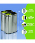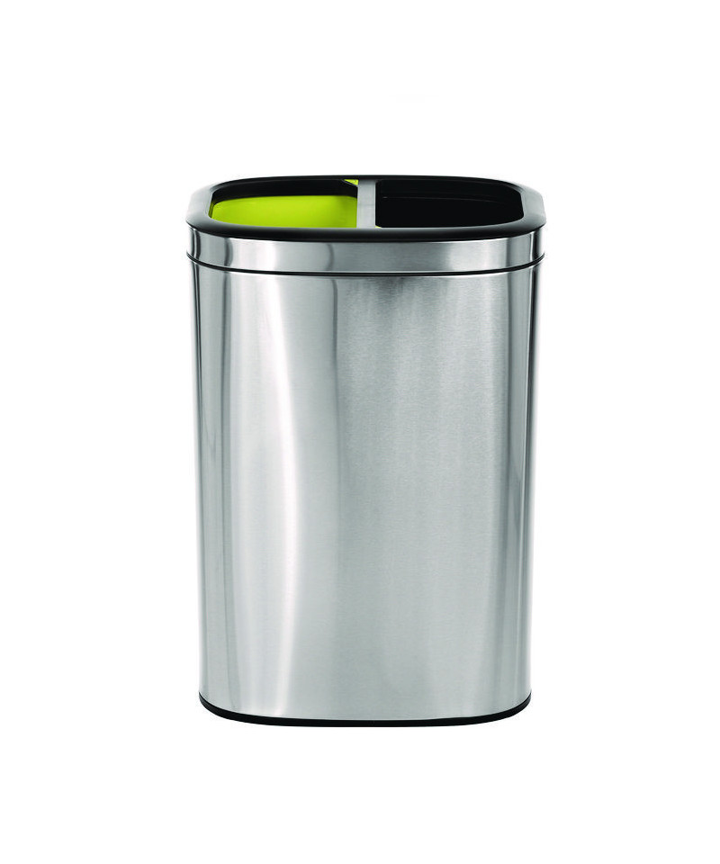 Alpine Industries 10.5 Gal. Stainless Steel Open Top Dual Compartment Trash Can is not just a waste bin, it's also an additional source of style and decor that's suitable in any environment. This dual compartment trash can is great for high traffic areas and for segregating trash for recycling. This large capacity trash bin, features a large diameter opening for waste disposal access. The stainless steel trash can will keep your space clean of rubbish and make it simple for trash disposal on the go. It includes rigid black and yellow plastic liners to easily remove trash and dump into trash bags or large disposals. Color coded for separating waste vs recycling contents. The external waste bin is constructed of durable and antimicrobial stainless steel for long-lasting use.