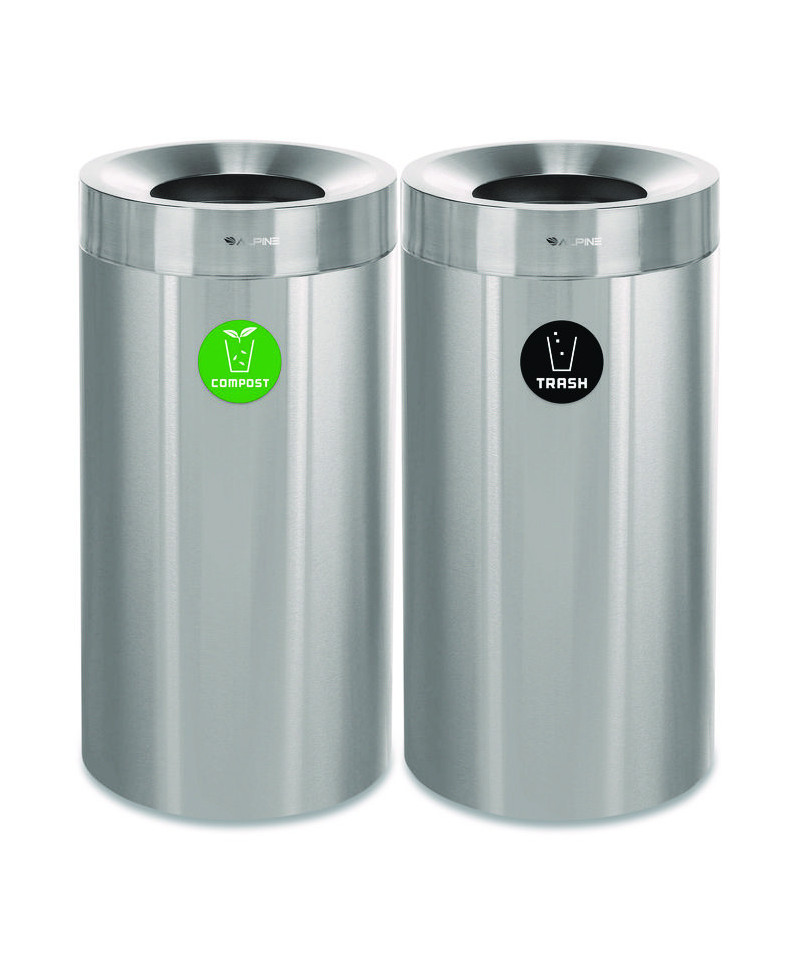 When equipping your business's interior with waste receptacles, you want to be reassured it will survive constant daily use and also will aesthetically add to your environment. With our modern, multi-stream waste management 27 Gallon Stainless Steel Compost and Trash Station, you can be confident you're getting an everlasting product that will help maintain cleanliness in your facilities. To help accommodate a more significant amount of compost and trash, the 27-gallon capacity can fulfill your foot traffic demands. Included with every purchase is a compost and trash sticker that will identify its intended purpose and be able to handle daily wear and tear. The vibrant colors of the stickers offer optimal visibility, assuring waste goes into the proper stream. In addition, the lids of the receptacles are created to display a seamless design that conceals trash bags but can efficiently be removed when needed. The large open top design of the lid will also allow precise disposal of all forms of waste. Our 27 Gallon Stainless Steel Compost and Trash Stations will allow you to streamline waste collection in your high-traffic area while adding a touch of modern appeal.