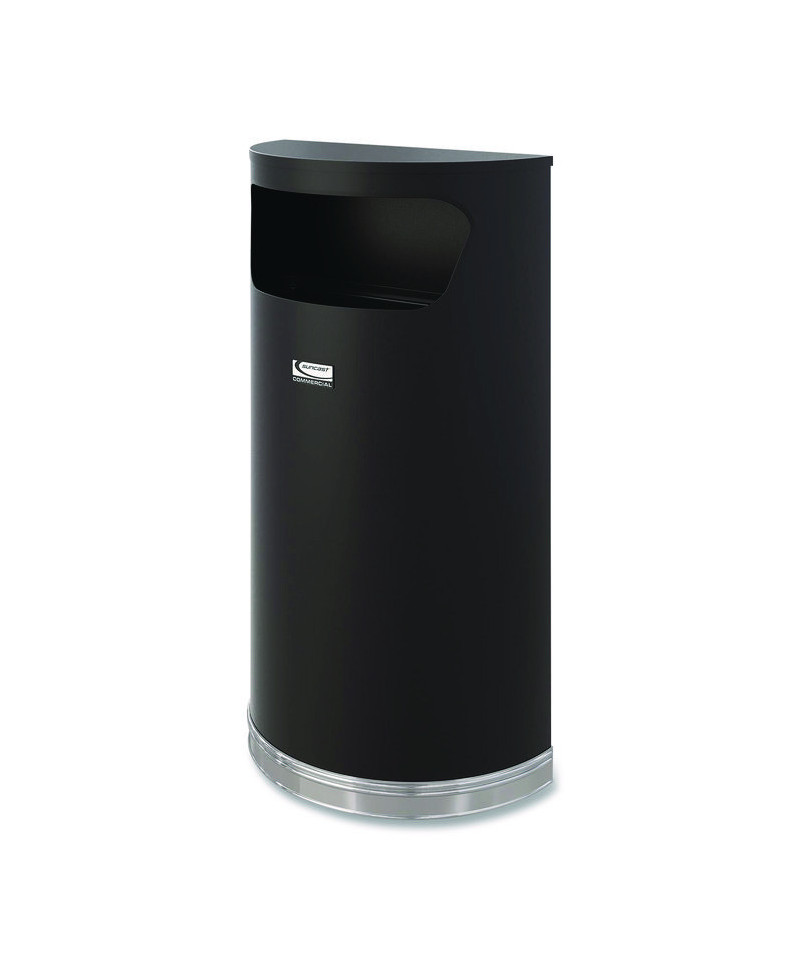 The Suncast Commercial® Half-Round Metal Trash Can is constructed of durable steel. This crescent trash can comes fully assembled, including a high density polyethylene liner for easy waste removal. With a sleek professional appearance, this decorative trash can is perfect for lobbies, shopping centers or any high traffic areas or businesses.