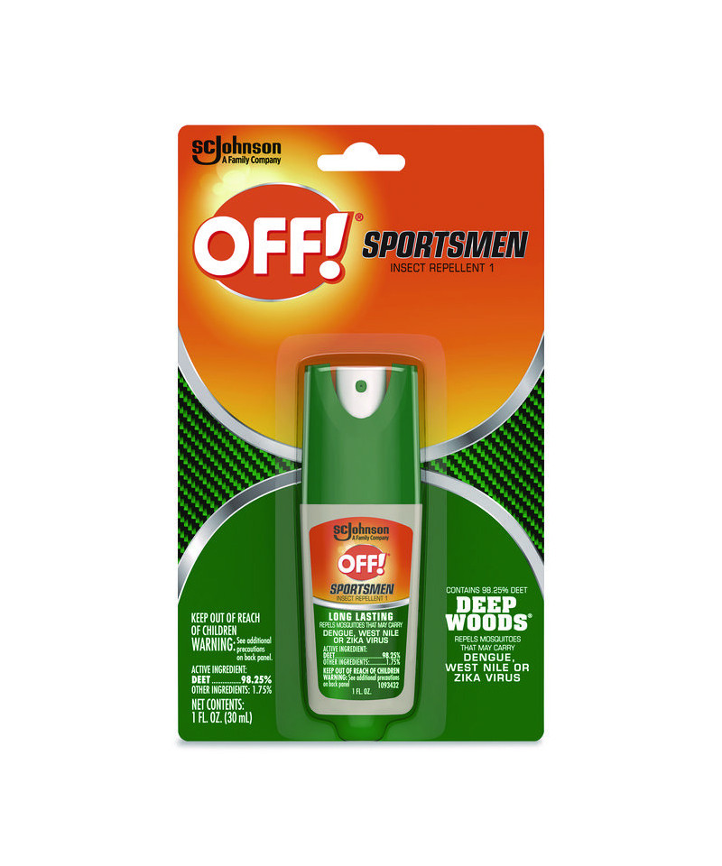 OFF! Sportsmen Deep Woods Repellent Spritz provides strong protection with 98.25% DEET formula. Repels biting insects for up to 10 hours. Non-greasy, odorless formula. Spray repels mosquitoes, ticks, chiggers, fleas, stable flies, black flies, gnats and Sandflies. Pump spray allows for easy application to skin, hair and clothing while keeping hands repellent-free. Small size convenient for keeping in a backpack or pocket.
