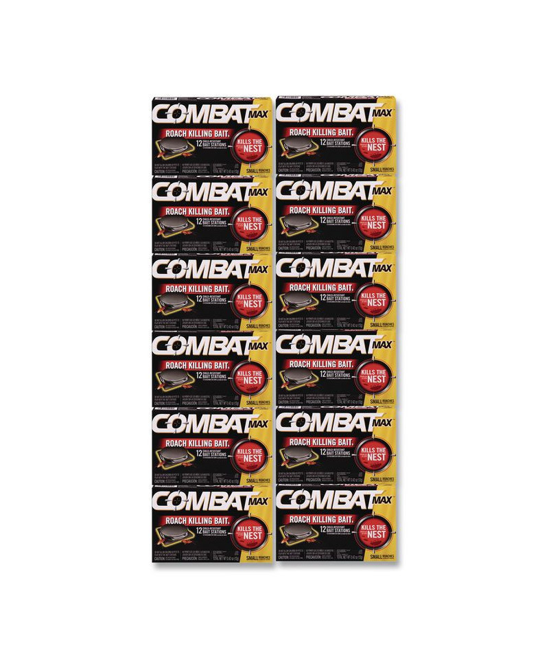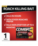 The baits are formulated with food that specifically attracts German roaches and other small roaches, plus a powerful insecticide, Fipronil, which starts killing within hours. Like all Combat® products, these baits target the nest to eliminate the source of the problem. Combat Max® baits are easy-to-use, child-resistant, need no activation, and can be used anywhere you see roaches. Simply place them down for up to six months of effective roach control. How Combat Max® Roach Killing Bait Works: 1. Roaches enter the bait station and eat the bait. 2. Roaches take the bait back to the nest. 3. Roaches share the bait, killing other roaches and destroying the nest.