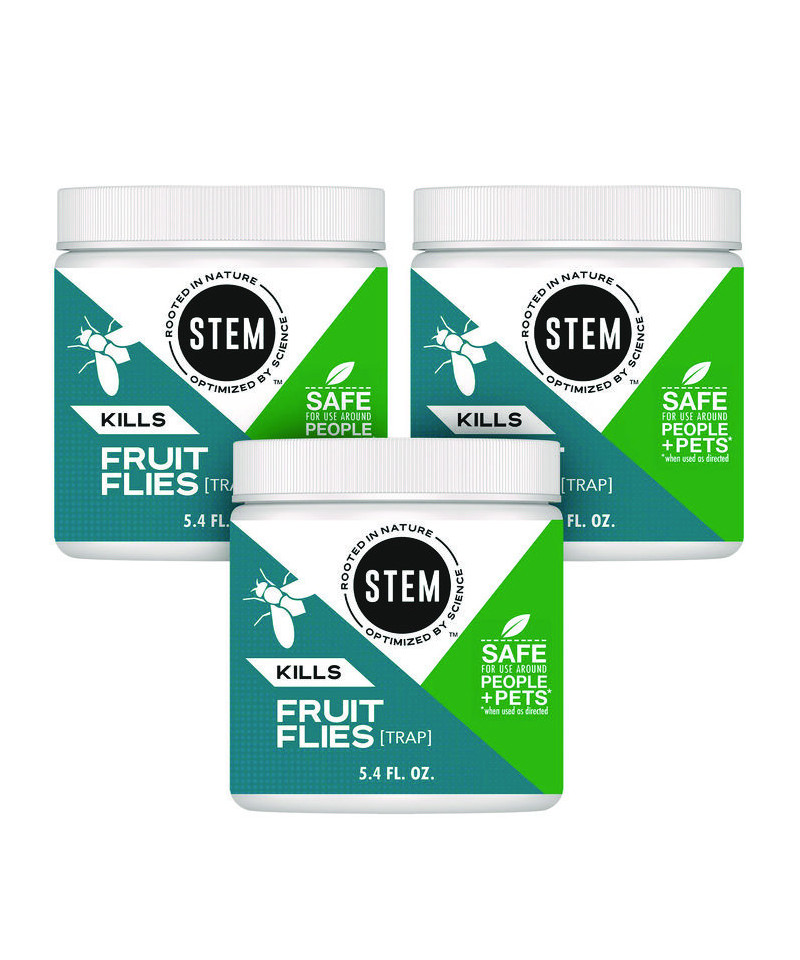 The STEM™ Fruit Fly Trap is made with botanical extracts to fight nature. It's safe to use indoors around people and pets (when used as directed, of course), wherever fruit flies are buzzing around. In this Fruit Fly Trap, there's a potent combination of ingredients designed to attract and drown fruit flies. In case you're curious, sodium lauryl sulfate is found in soap, ethyl lactate is a solvent found in wine, malic acid is the sour flavor in apples, and the syrup ingredient provides a sugar source to attract the fruit flies to the liquid inside the jar.