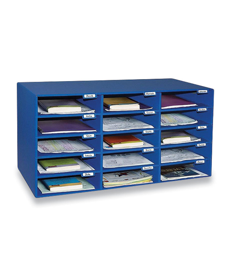 Exchange information with students and keep their work sorted with this mailbox system. The 15 individual slots let you assign a compartment to each child. Space for labeling makes it easy for kids to identify their own mail. This system can be stacked with additional units to accommodate your class size. With a fun color and durable construction, this mailbox is perfect for use in elementary schools and daycare facilities.