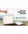 The Adir Corp Multi Purpose Large Size Suggestion Box can be used in any office as a mail collection box for all outgoing or incoming mail. It can also be used to keep private office correspondence confidential, allowing your employees or customers to voice their greatest concerns while remaining anonymous. Constructed of durable, heavy-gauge steel, the mailbox is designed to last you well into the future. It also features a scratch-resistant finish to stand up against everyday wear and tear, providing long-term durability and use for years to come. Serving a variety of needs, this drop box will be a convenient addition for retail stores, rental facilities, customer service counters, manufacturing plants, auto dealers and other facilities. The drop slot measures 10" x 0.31" deep, and can accept checks, keys, suggestion cards, envelopes or other materials dropped off after hours. A full piano hinged door with a durable lock ensures the items inside are safe and secure. Meanwhile, two keys are included for easy access and entry inside to remove items and make room for additional material. Finally, this multi-purpose box is equipped with pre-drilled holes and comes complete with screws for quick and easy installation on any wall or door.