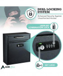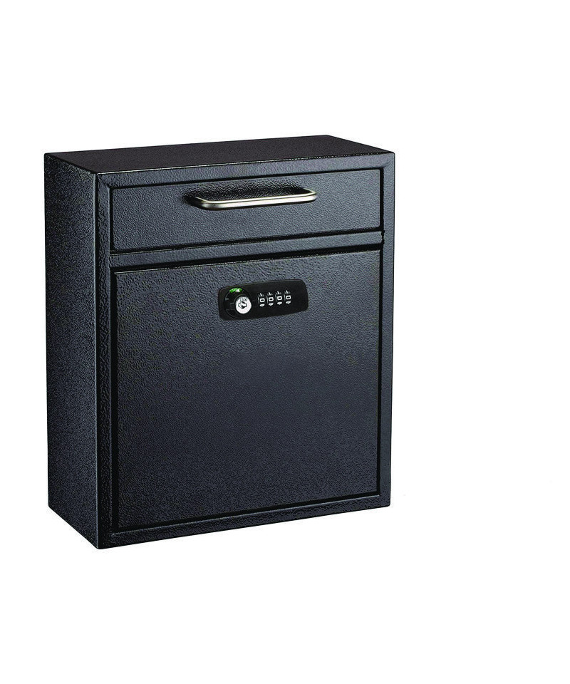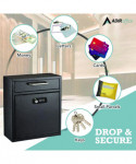 Medium Secure Drop Box Wall Mounted Locking Mail Box with Key and Combination Lock, 10.51 x 4.72 x 12, Black