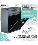 The AdirOffice Locking Drop Box Wall Mounted Mailbox is designed to hold keys, cash, envelopes or other important materials that need to be dropped off after hours. Constructed of durable, heavy duty 16-gauge galvanized steel to provide long-lasting strength and furnished using a powder-coated, scratch-resistant finish, this mailbox is made to meet your needs year after year, Ideal for retail stores, military bases, rental facilities, customer service counters, manufacturing plants, auto dealers and other facilities, this secure drop box features an anti-fishing bin door that accepts letters, checks, keys and other small bundles, To prevent theft, a anti-pry latch locking mechanism is used. The locking access door features a commercial grade 12-disc wafer lock and includes three laser cut keys to ensure the items inside are safe and secure. To finish it off, this mailbox includes four mounting screws, four stainless steel washers, a driver bit and a drill bit for quick and easy installation of the box wherever you'd like to mount it.