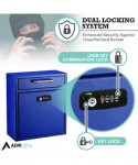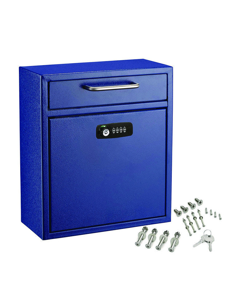 Medium Secure Drop Box Wall Mounted Locking Mail Box with Key and Combination Lock, 10.51 x 4.72 x 12, Blue