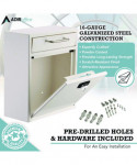 The AdirOffice Locking Drop Box Wall Mounted Mailbox is designed to hold keys, cash, envelopes or other important materials that need to be dropped off after hours. Constructed of durable, heavy duty 16-gauge galvanized steel to provide long-lasting strength and furnished using a powder-coated, scratch-resistant finish, this mailbox is made to meet your needs year after year, Ideal for retail stores, military bases, rental facilities, customer service counters, manufacturing plants, auto dealers and other facilities, this secure drop box features an anti-fishing bin door that accepts letters, checks, keys and other small bundles, To prevent theft, a anti-pry latch locking mechanism is used. The locking access door features a commercial grade 12-disc wafer lock and includes three laser cut keys to ensure the items inside are safe and secure. To finish it off, this mailbox includes four mounting screws, four stainless steel washers, a driver bit and a drill bit for quick and easy installation of the box wherever you'd like to mount it.
