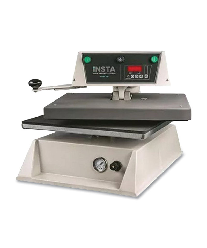 The Insta 728 is an automatic swingaway heat press with a 15” x 20” platen. This machine is a workhorse and world renown for one of the most reliable, durable and consistent heat presses in the industry. Since it is a pneumatic heat transfer machine, its air-driven operation prevents operator fatigue and promotes consistent production speeds. The Insta 728 is used globally, by contractors for many of the world’s leading clothing brands, because of its fast recovery, accurate temperature, even pressure and its ability to generate consistent results under 24/7 use.
