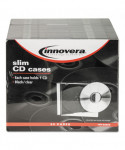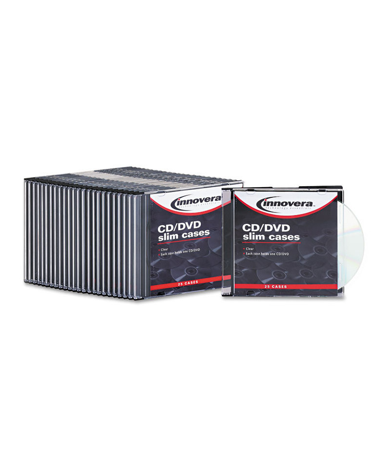 Organize and protect your CD/DVD collection with the Innovera slim jewel CD/DVD cases. Each durable plastic case holds one disc and includes interior tabs and a clear outer sleeve for custom artwork or labels. Designed for convenience and quality, these cases are an excellent solution for streamlined storage and presentation of your valuable media. Perfect for organizing movie, game, or software collections.