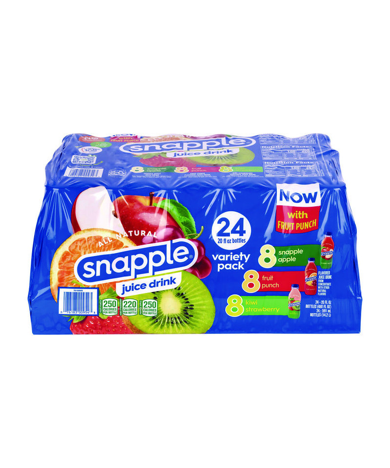 Are you Mad for Mango? Crazy for Kiwi Strawberry? And hey, you can't spell Snapple without Apple? Life's full of decisions, but you don't have to make one here. All of your favorite Snapple Juice Drinks, in one convenient variety pack: Fruit Punch, Kiwi Strawberry and Snapple Apple. All Tasty. All Delicious. All for you. We began by selling our apple juice to health clubs in 1973. Diversifying our flavor portfolio throughout the 80s into teas, fruit juices and lemonades, Snapple went national in the early 90s. Now you can find us in all 50 states across the country. It's gluten-free, caffeine-free and all naturally made with real fruit juice, so each bottle is free of artificial sweeteners and flavors. They say variety is the spice of life, so go ahead and take a sip of Fruit Punch, Kiwi Strawberry and Snapple Apple knowing you're getting a great-tasting drink made with natural, high-quality ingredients in a bottle.