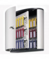 Unlock effortless organization with the Key Cabinet from DURABLE®. This German-designed organizational tool is crafted for efficiency and longevity. Say goodbye to the frustration of hunting down misplaced keys, this wall-mounted key cabinet has adjustable key rails catering to keys of different lengths and sizes, so every key has its own designated spot. This key cabinet doesn't just organize your keys the lockable design keeps them secure. The external keyed lock ensures the security of the keys inside the cabinet, allowing access only to those with an entry key. The lay-flat key tags keep your key tag labels facing outward for quick and easy identification. No more playing detective to figure out which key is which; with this rack, you'll always know which key unlocks what. The large snap-open label window not only makes quick work of labeling the key tags, but it also fast tracks exchanging keys (you don't have to remove the key from the key ring). Take it a step further by personalizing label inserts with free DURAPRINT® design software available on the DURABLE website. Each key cabinet includes wall-mounting hardware for hassle-free installation, adjustable key rails (with 6 hooks each), an inventory list, 2 entry keys to lock/unlock the cabinet, and 6 color-coded key tags with steel/nickel-plated key rings (2 black, 2 dark blue, 1 red, and 1 yellow). Plus, with additional key tags available for purchase (DBL194900, DBL195701, DBL195707), you can expand your collection as needed. Ideal for parking garages, valet stations, offices, hotels, car dealerships, schools, retail stores, real estate companies, maintenance and janitorial teams, government buildings, warehouses, factories, commercial properties, and more. For over 100 years, DURABLE has been synonymous with quality, design, and functionality. As a testament to this legacy, DURABLE products combine innovative design with a wealth of experience. Trust in a brand that understands the importance of organization for enhancing productivity.