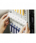 The Lockable Key Cabinet from DURABLE® is the perfect solution for keeping multiple keys secure, organized, and easy to find. With its 6 adjustable key rails, this high-quality brushed aluminum, wall-mounted key cabinet accommodates keys of various sizes and lengths. The external keyed lock ensures the security of keys within the cabinet, allowing access only to those with an entry key. The patented lay-flat key tag design keeps the label facing outward for quick identification. Large snap-open label windows make it easy to label key tags and exchange keys without removing the key ring. Personalize label inserts with free DURAPRINT® design software available on the DURABLE website. Key tags come in 4 different colors (2 black, 2 dark blue, 1 red, and 1 yellow), enabling you to establish a