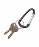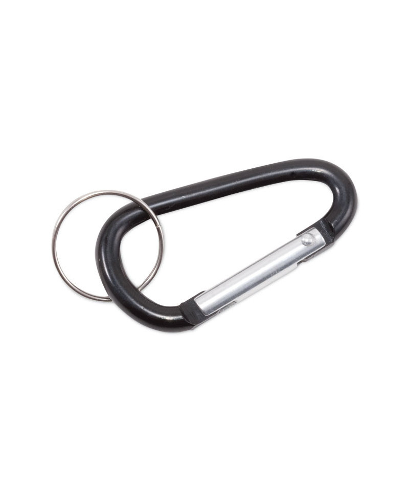 Classic D-shaped carabiner key chains made of solid aluminum. Strong spring hinge opens smoothly for attaching carabiner to bags, backpacks, belt loops, etc. Split key ring is ideal for keys, badge holders, etc. Perfect for around the office use!