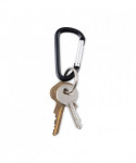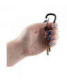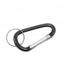 Classic D-shaped carabiner key chains made of solid aluminum. Strong spring hinge opens smoothly for attaching carabiner to bags, backpacks, belt loops, etc.