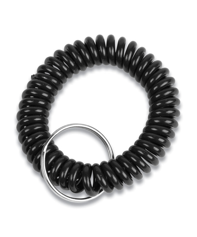 Easily keep track of important keys and belongings with this key holder. Flexible plastic extends to a comfortable fit on any wrist, while the steel key ring securely holds keys.