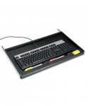 Conserve valuable desktop space and improve the ergonomics of your workstation with this underdesk keyboard drawer. High-impact plastic tray holds keyboards up to 20 3/4w x 10 1/8h. Built-in wrist rest features handy cut-outs to hold supplies. Three different height selections for custom comfort. Easy installation with hardware included.