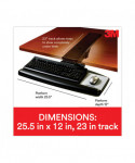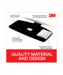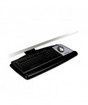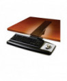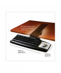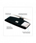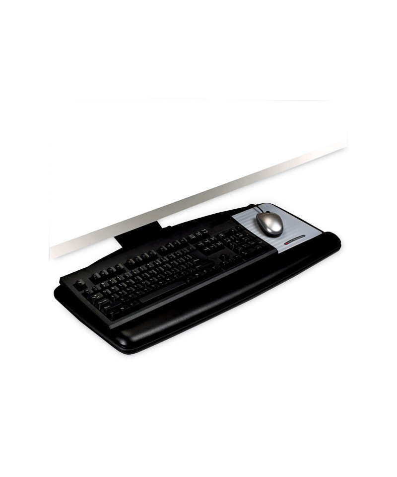 Increase comfort and productivity by placing your keyboard and mouse at a proper level. This keyboard has an easy adjust arm which allows height adjustments of 4" above and 6" below mounting surface just by tilting the platform. Tilt is adjusted by dialing tilt knob to desired angle. Standard all-in-one platform with wooden construction minimizes bouncing. Includes all-in-one leatherette gel wrist rest with antimicrobial product protection and Precise™ Mouse Pad that can be placed on right or left of keyboard.