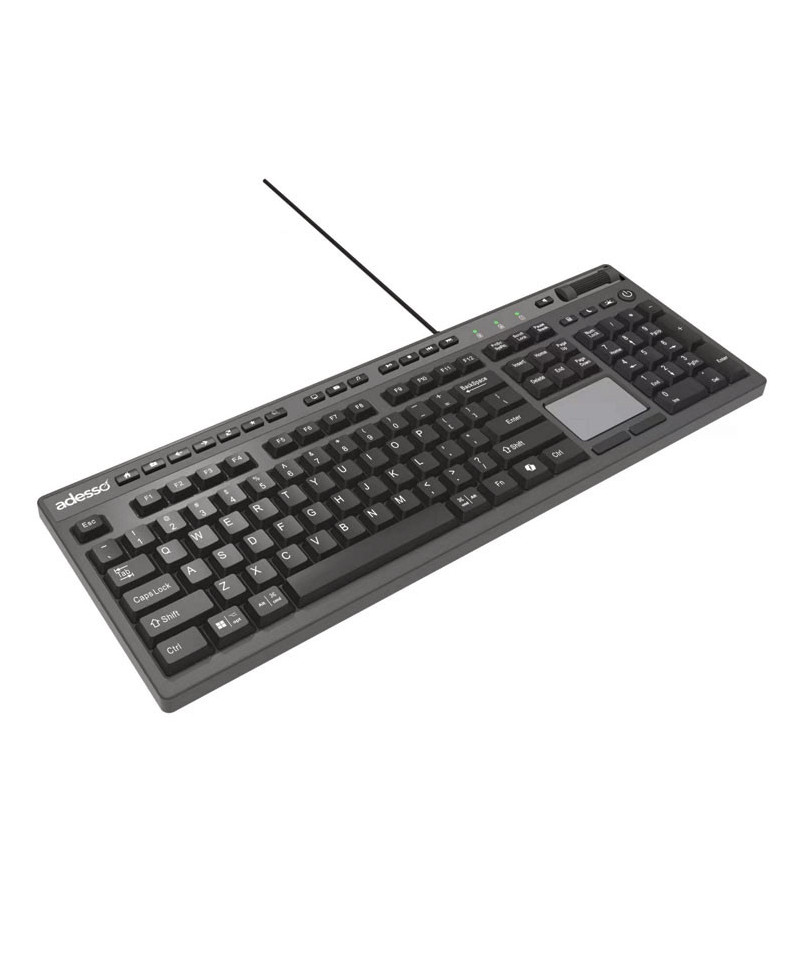 The Adesso AKB-445UB is a wired multi OS full-sized touchpad keyboard with membrane switches. This model is built to make handling your daily computer tasks much easier. This touchpad keyboard offers the freedom to use different Operating Systems from Windows® and Mac® with its multi-OS key configurations. The keyboard also features an integrated built-in touchpad, which can take the place of your mouse, making it easier to control the movement of the cursor in your personal computer with the included left/right click buttons and scroll wheel. Control all aspects of your user experience with one-touch using the built-in Internet, Multimedia, and Desktop Hotkeys. Quickly complete your tasks with 13 Windows Keys that let you quickly navigate your files and the web while taking full control of your multimedia entertainment with seven Multimedia hotkeys.