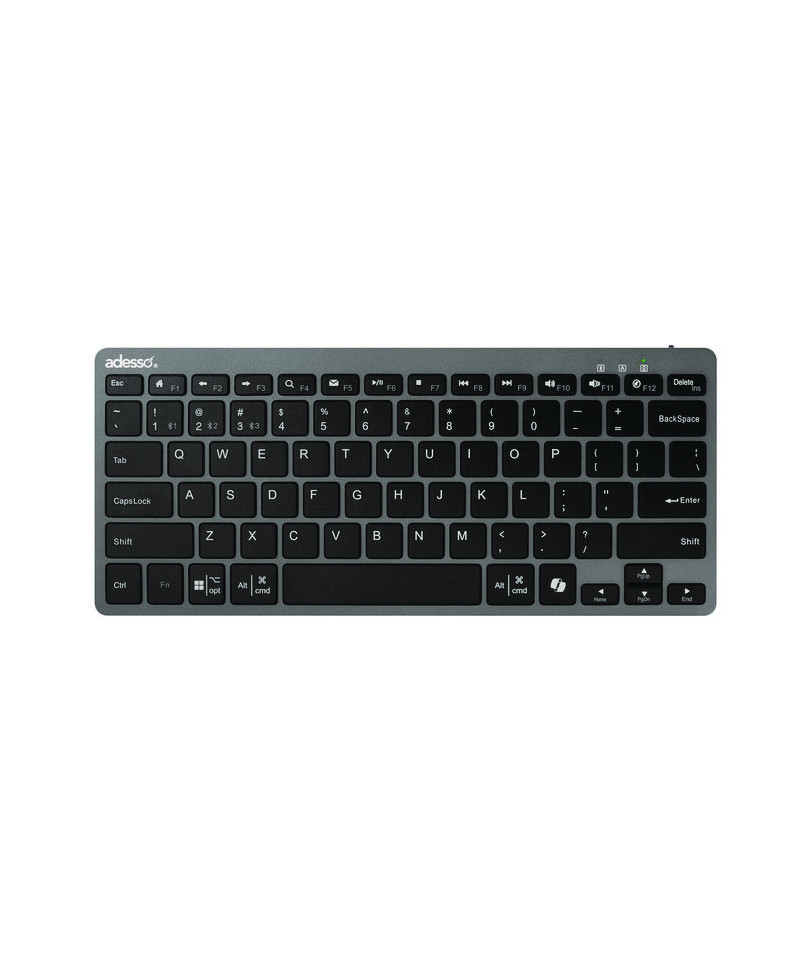 The Adesso WKB-7000 is a mini scissor-switch keyboard with a CoPilot AI hotkey that has the capability of working wirelessly through Bluetooth® and is built to make handling your daily computer tasks easier. This sleek keyboard uses switches that provide a more quiet, tactile and snappy response when typing.