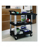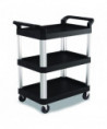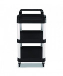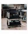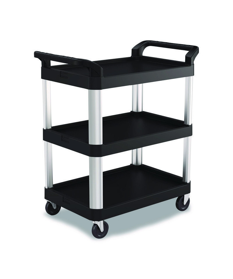 The three-shelf utility cart by Suncast Commercial® is perfect for schools, hotels and many other businesses. With polypropylene shelves and aluminum supports, this sturdy service cart was manufactured to hold up to a total of 300 lbs. The four non-marring casters provide a smooth ride when transporting from room to room.
