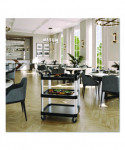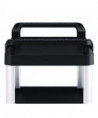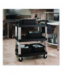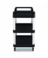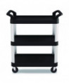 This cart is perfect for schools, hotels and many other businesses. With polypropylene shelves and aluminum supports, this sturdy service cart was manufactured to hold up to a total of 300 lbs. The four non-marring casters provide a smooth ride when transporting from room to room.