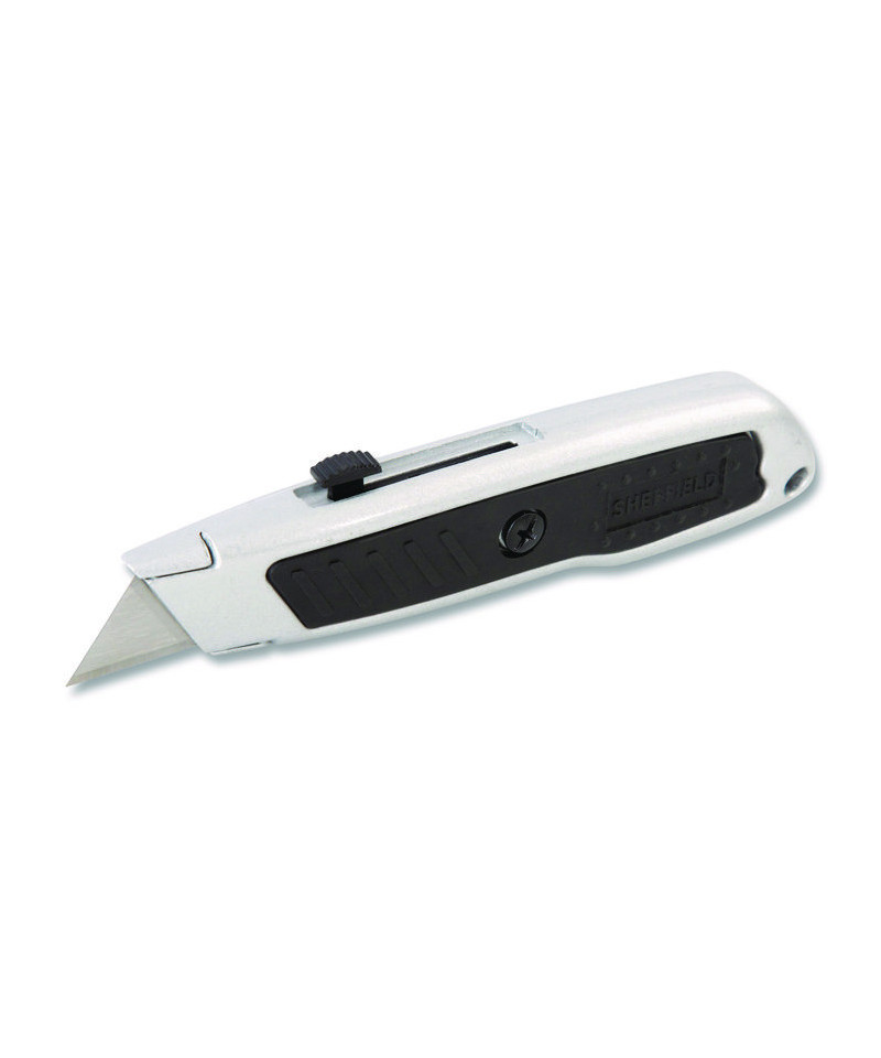 Offers high quality construction, versatility and follows our longstanding tradition of value. The knife has a durable high-impact case with a rubber grip. The retractable blade locks in four positions.