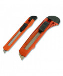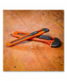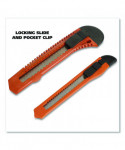 This set includes a 9 mm and 18 mm snap-off knife and is perfect for light duty cutting of paper, vinyl and leather. The end of the blade snaps off easily to provide a fresh new cutting edge, with a locking slide to ensure safety. A convenient pocket clip makes it easy to carry around.