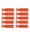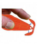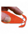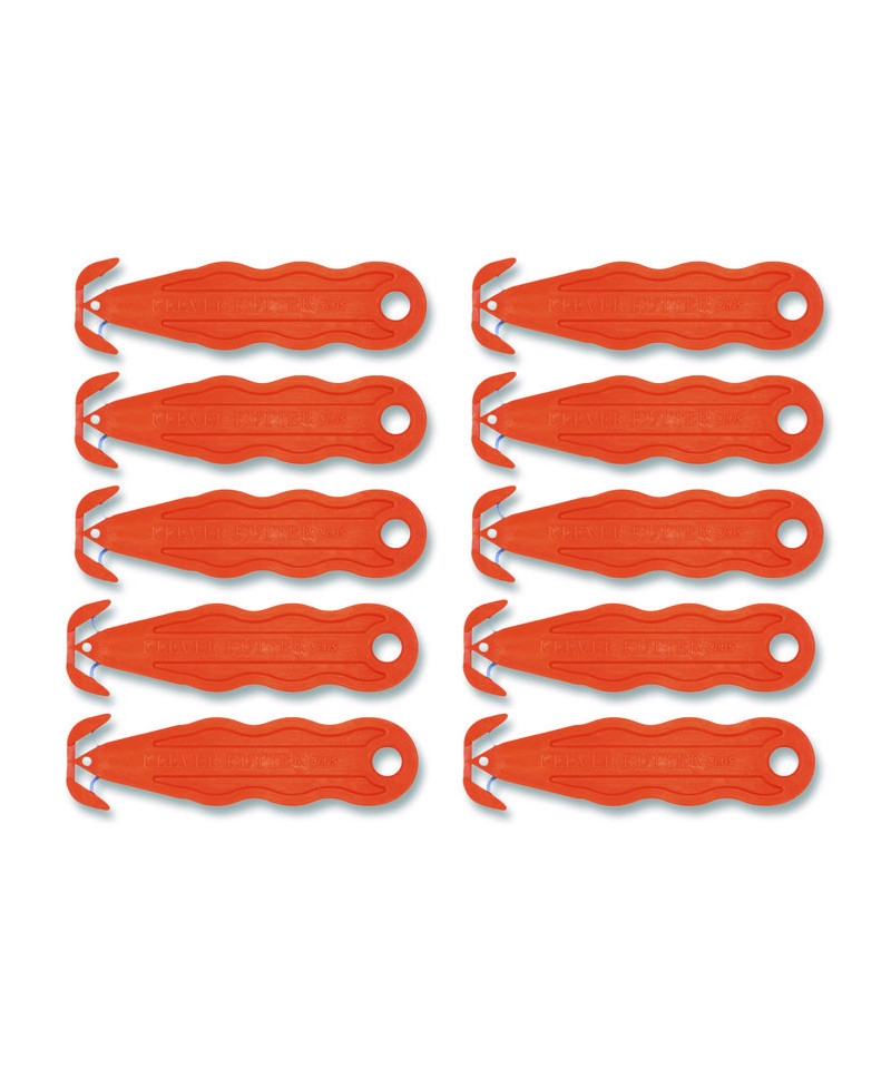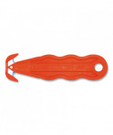 Dual-safety-hook design reduces the potential for injuries and product damage, while increasing the knife's productive use life. Unique, box-piercing T-profile requires less pull-force than standard hook-style safety cutters, saving users from repeated-use-related hand and arm issues. High-quality, carbon-steel Kurve™ blades provide a longer cutting surface than standard straight blades, enabling easier, smoother cutting with less friction and a lower incidence of bunching. Lightweight, ergonomic, advanced-polymer handle features a lanyard ring and an innovative plastic-tape splitter projecting off the ring's end.