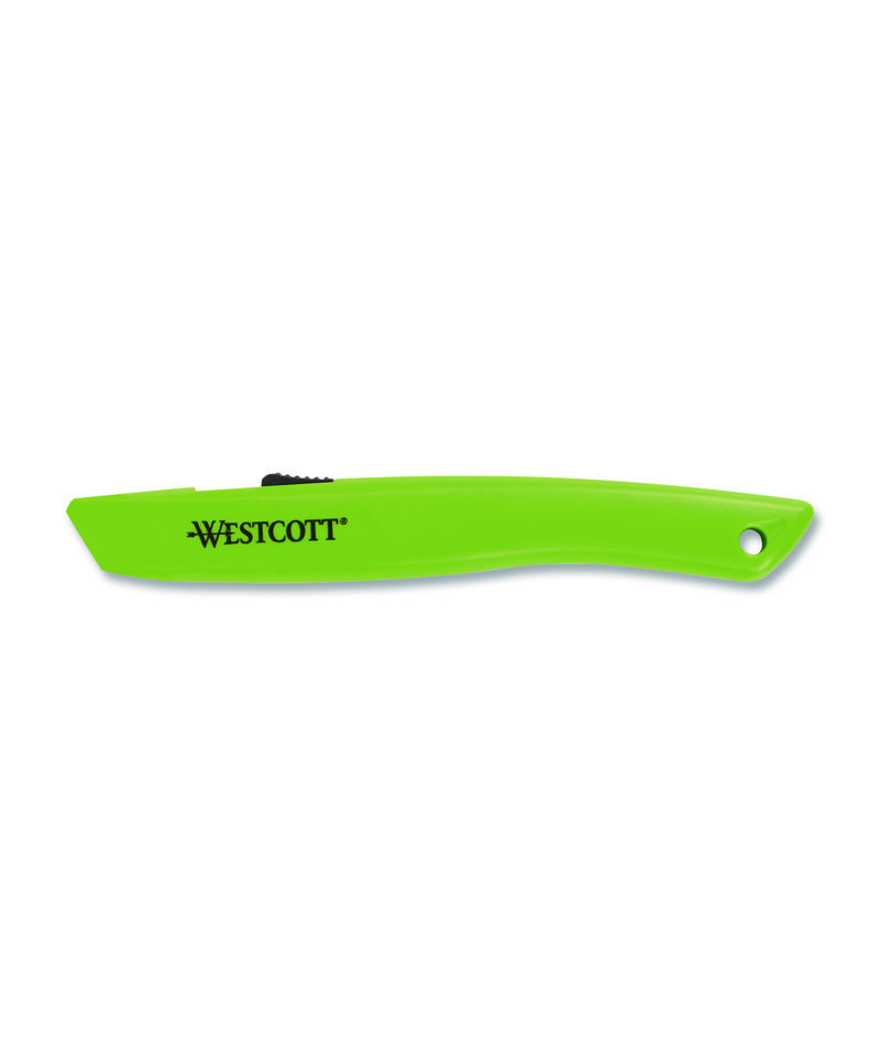 The self-retracting utility knife can't be left around or put in a pocket with the blade exposed. The spring-loaded blade retracts into the knife...