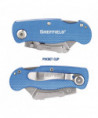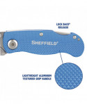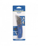 The Sheffield 12113 Folding Lock Back® Utility Knife features a one-hand opening operation for convenience as you cut through obstacles such as paper, cardboard, and more! This Sheffield Utility Knife also boasts a quick-change mechanism for a quick and easy blade replacement procedure, using standard utility knife blades. It features a lightweight aluminum handle for ease of use and includes a belt clip for easier carrying. You're all set to cut through twine, boxes and more with "ultimate" ease.